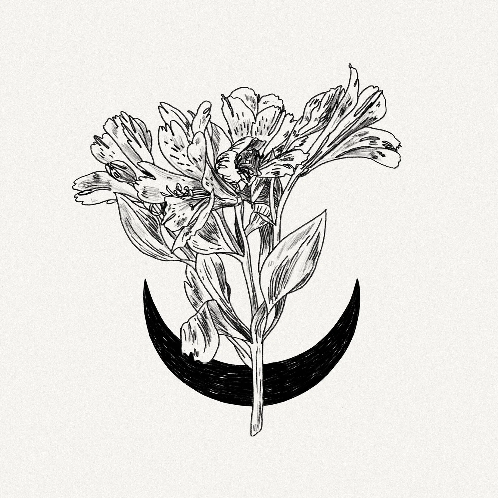 I partnered the alstroemeria with a scribbly crescent moon and I just really like how the moon cups the flowers! It reminds me to include more occult/tarot references in my work since I enjoy the symbolism so much. I often like to think about my illustrations and which tarot card the energy resembles, I’m most familiar with the Rider Waite Smith system but I recently picked up my first Thoth deck which is brimming with symbolism. I’m enjoying learning about the various tarot systems and how each can widen my tarot vocabulary.