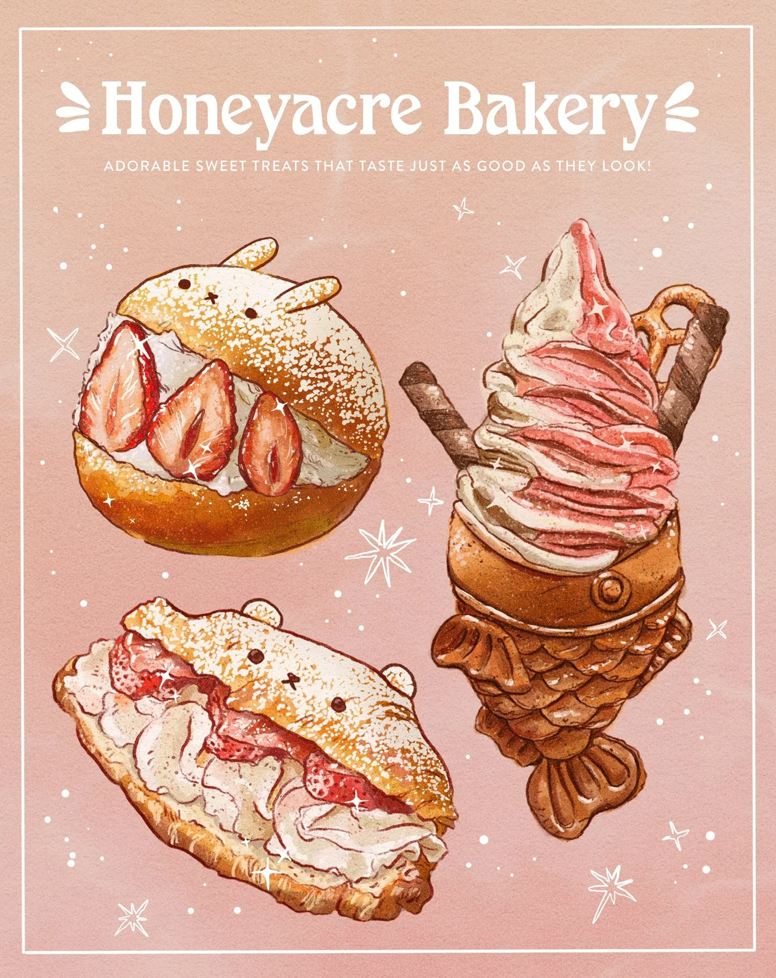 It’s been a long time since I last shared my work here and in that time a lot has changed, I’m now primarily working in full colour and I’m painting lots of cute desserts!