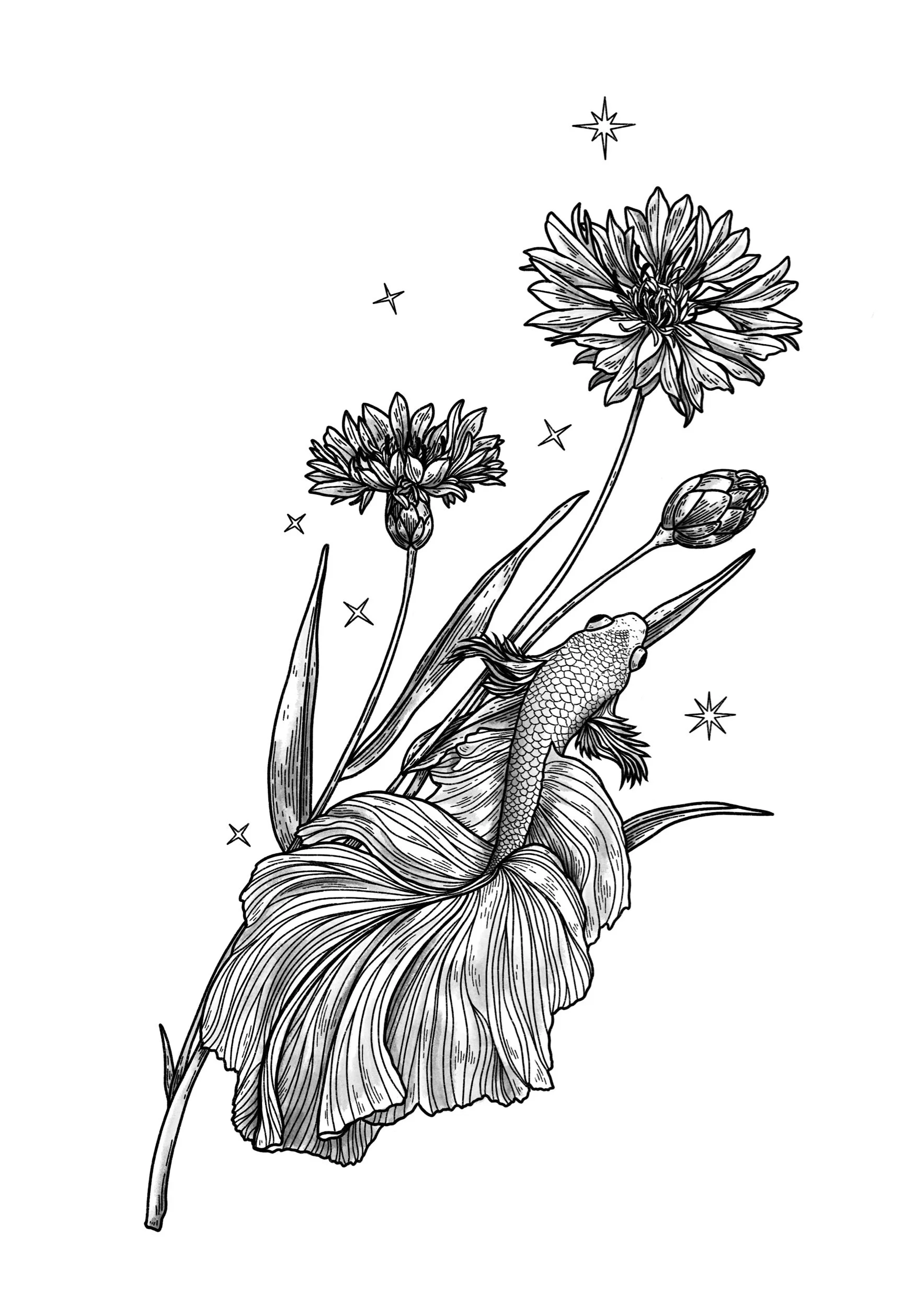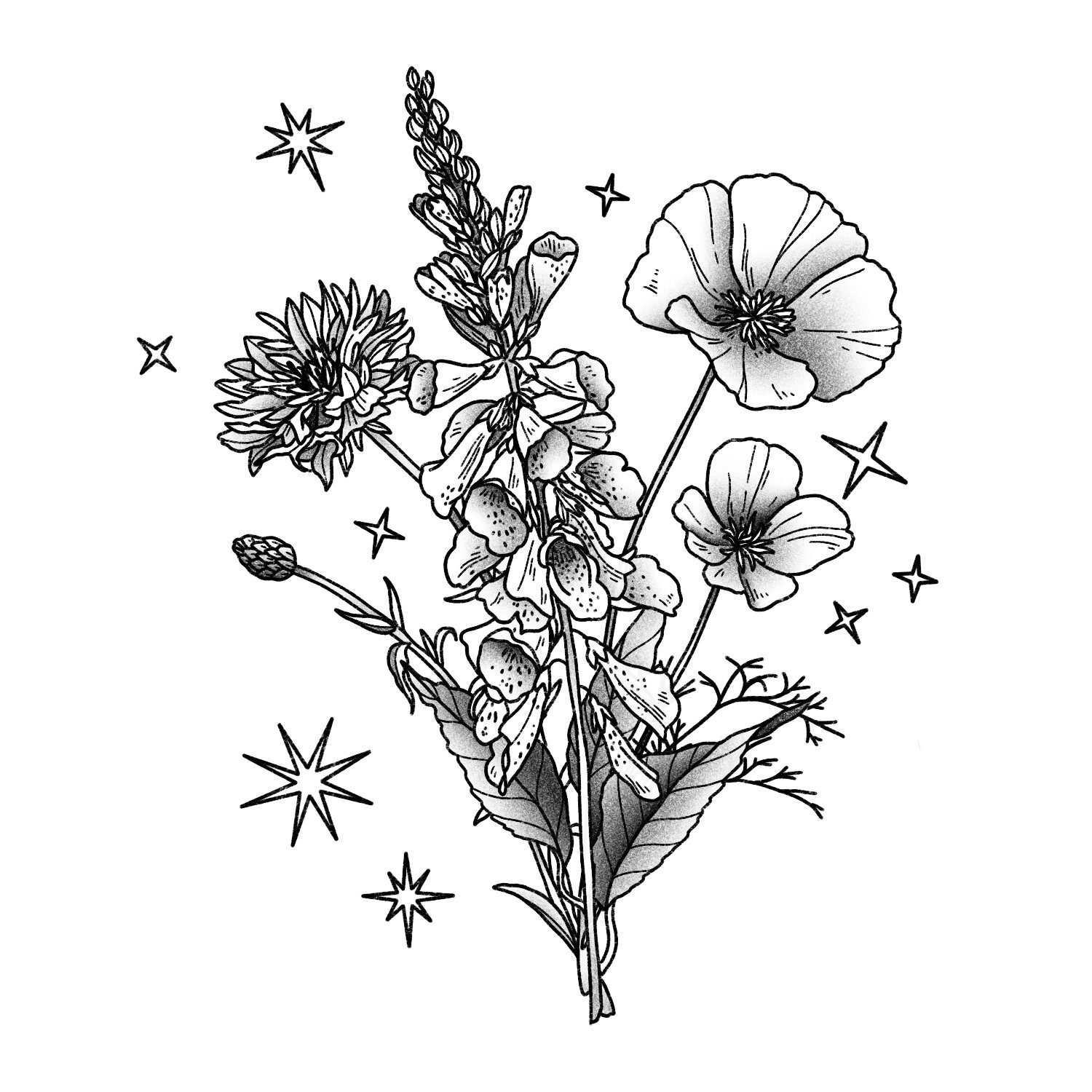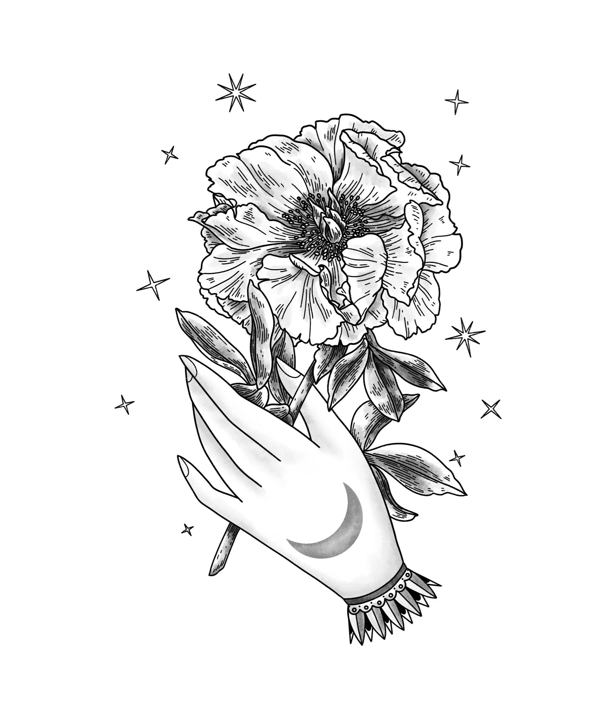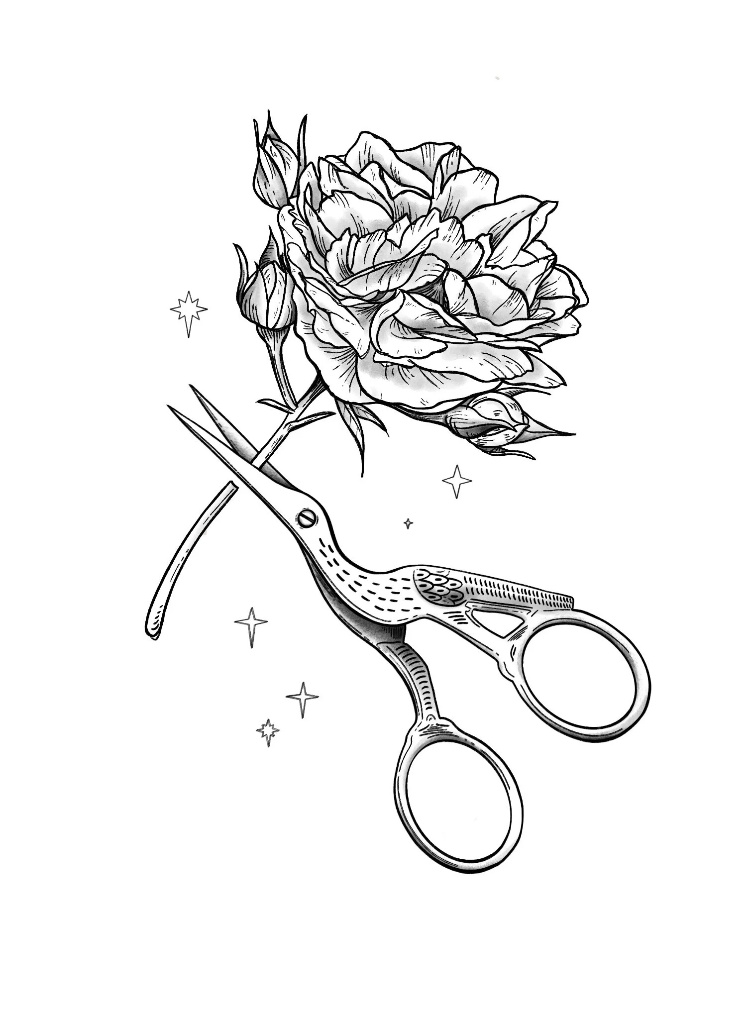 Hi I’m Kelly, and I love designing blackwork botanical pieces in an illustrative style inspired by engravings.
